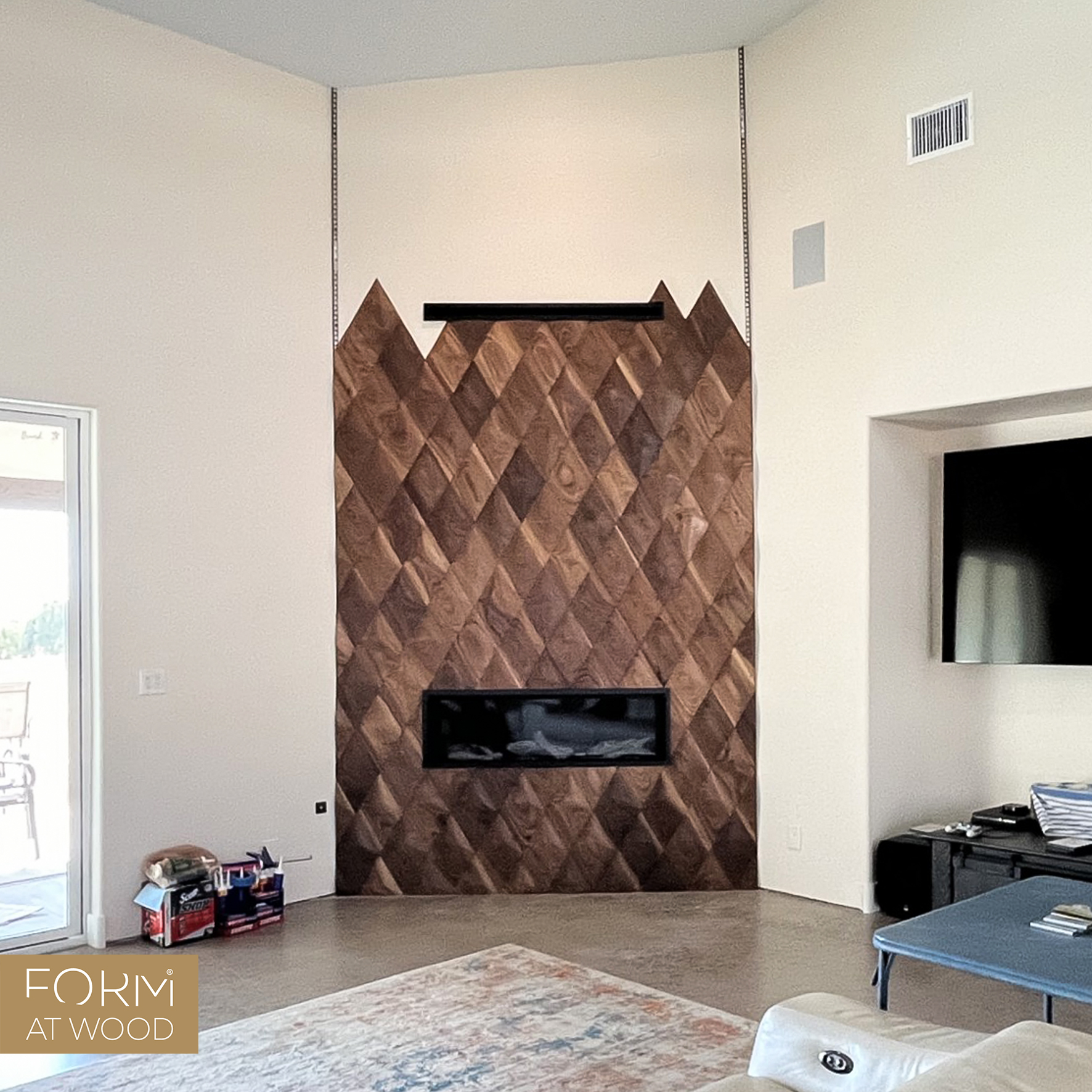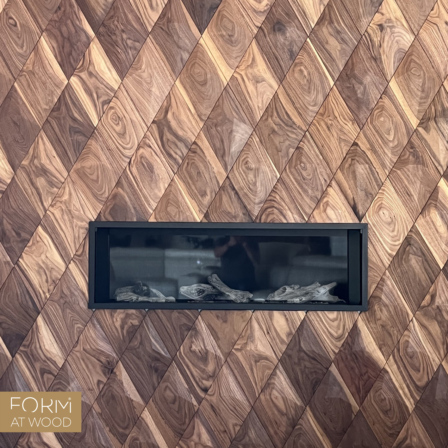 Bob had a clear vision – a fireplace surrounded by wood that would become the heart of their home. After a detailed analysis, it turned out that the fireplace was properly insulated, allowing for the safe use of wooden panels. Following multiple consultations and exploring various options, they selected the DIAMOND panels in American Walnut.