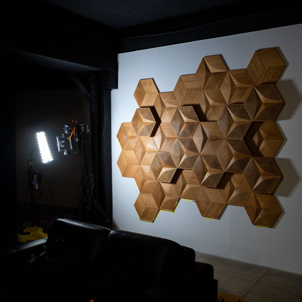 Drewniane panele akustyczne – seria HEXAGO (stworzona we współpracy z AGH Kraków).