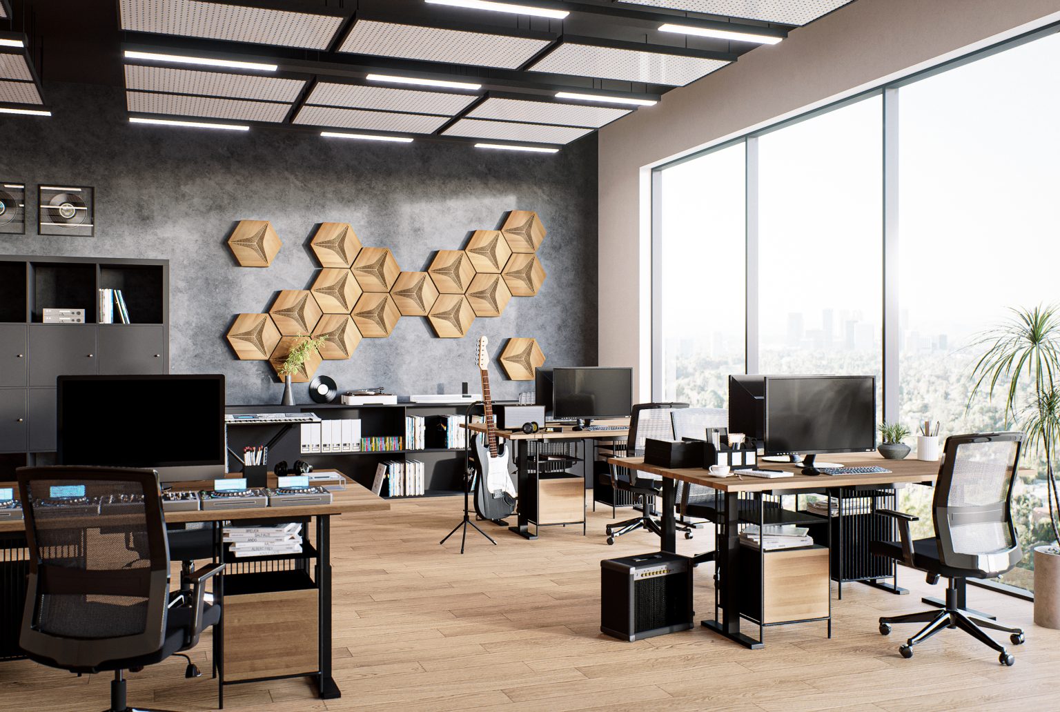 - Deep work – maksymalna cisza (panele akustyczne HEXAGO CM-D)