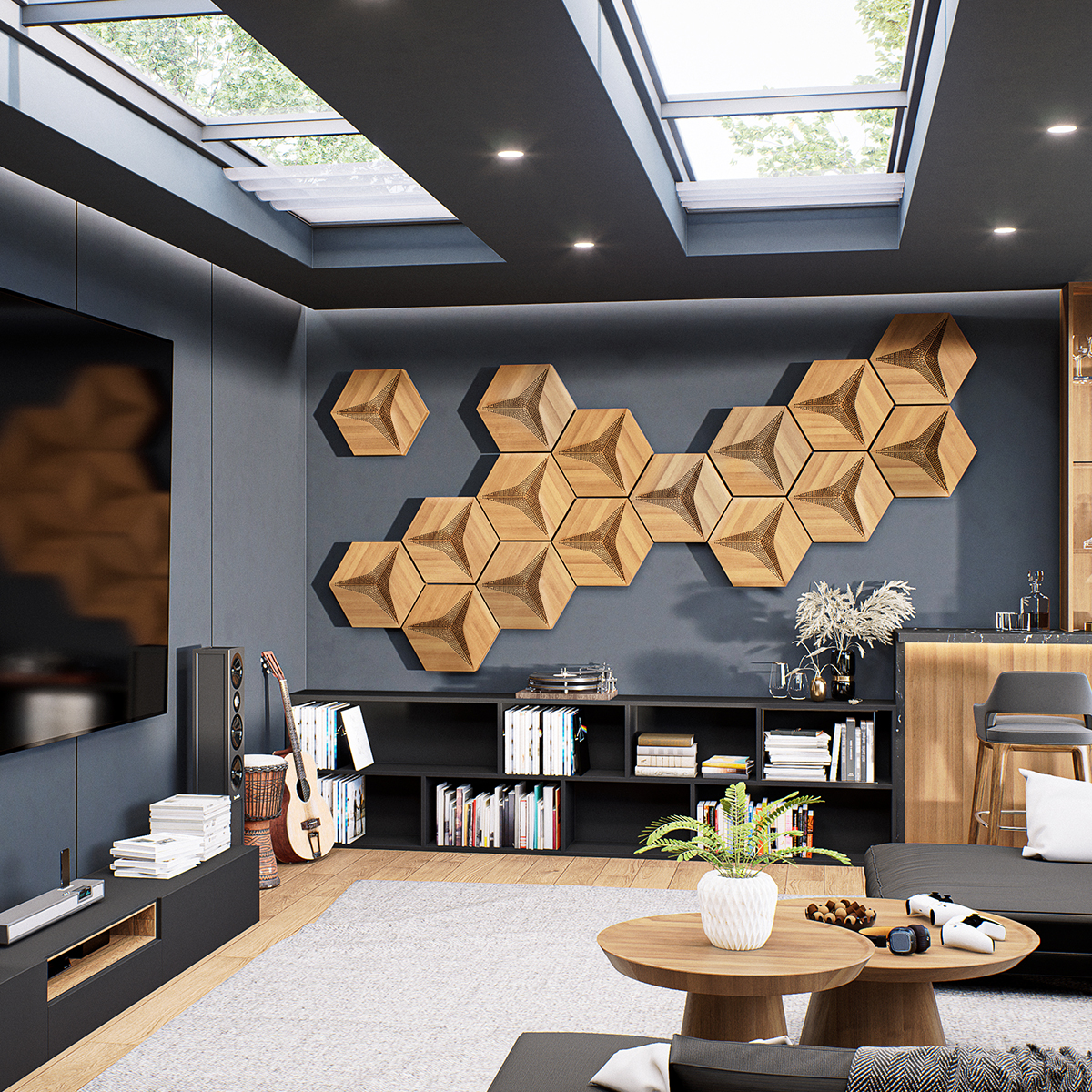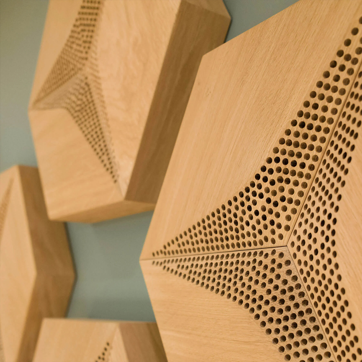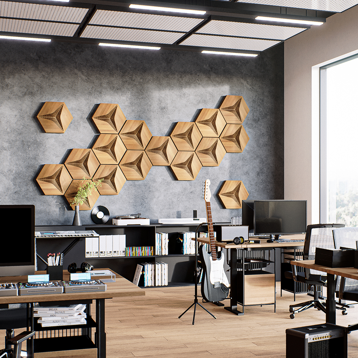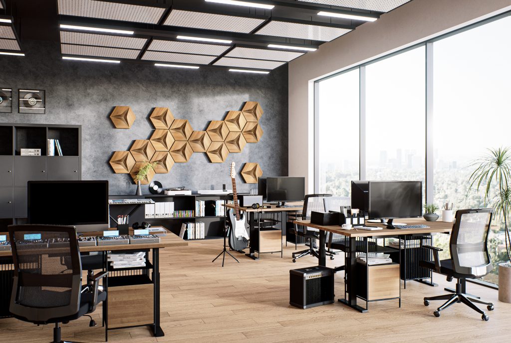 Drewniane panele HEXAGO CM-D to gwarancja komfortu akustycznego w najbardziej wymagających przestrzeniach.