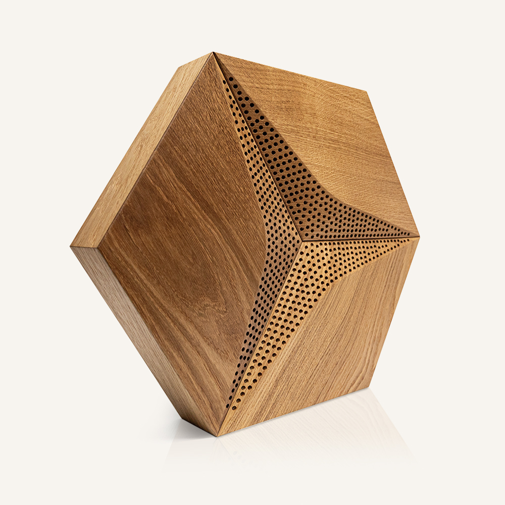 • Heksagonalny kształt, naturalne materiały i precyzyjnie perforowane powierzchnie zapewniają pochłanianie dźwięku oraz unikalny design dla każdego wnętrza