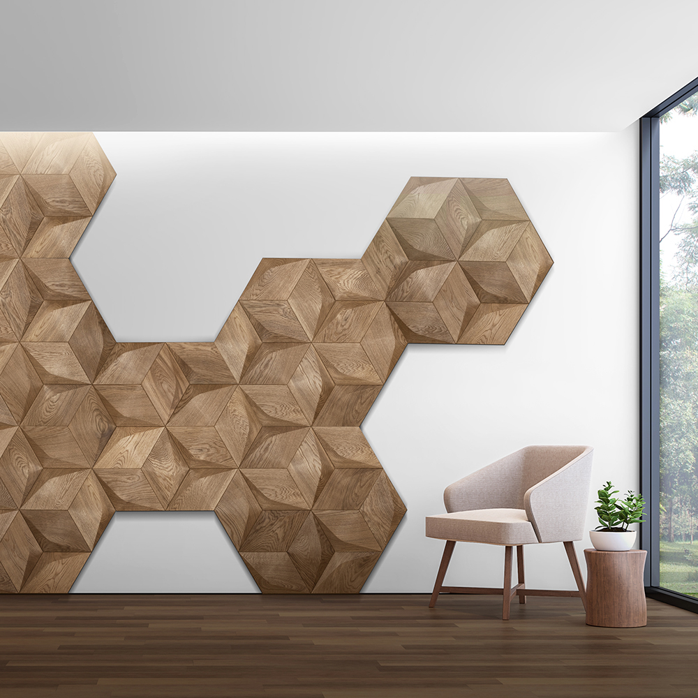 Serię drewnianych paneli SMOOTH charakteryzują organiczne i płynne kształty, idealne do ciepłych i przyjaznych aranżacji. Miękka forma rombu i kwadratu wprowadza spokój, a szeroka gama kolorów i rodzajów drewna zapewnia różnorodne efekty wizualne.